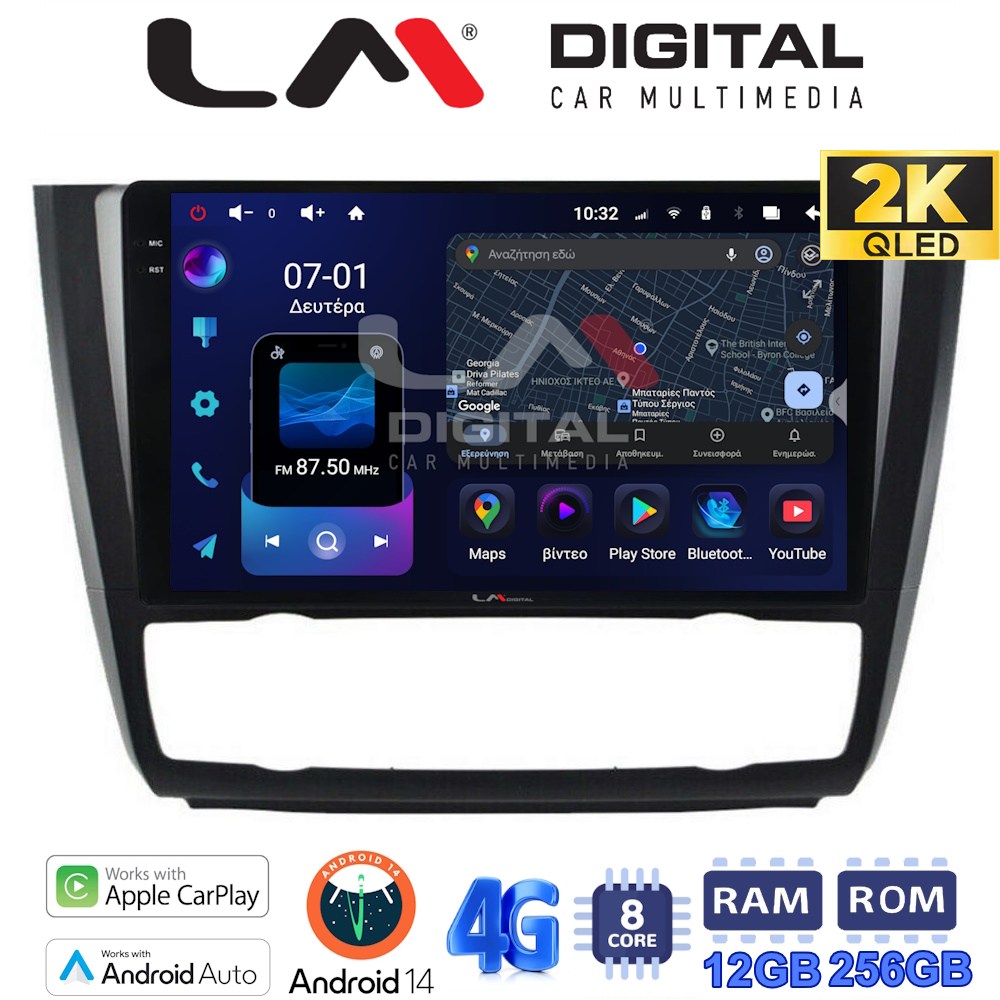 LM Digital – LM ZS8170B GPS Multimedia οθόνη συμβατή για BMW Σειρά 1 (E81 – E82 – E87 -E88) με 8 πύρηνο επεξεργαστή με 12GB/256GB και 2Κ οθόνη