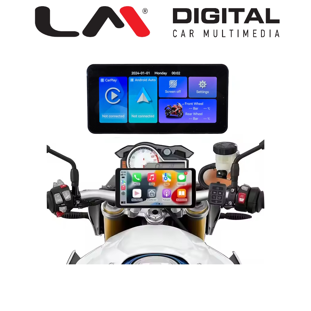 6,3 inch orizontal MONITOR για μοτοσυκλετες IPX7 (αδιαβροχο) με car play & android auto σε βάση τζαμιου