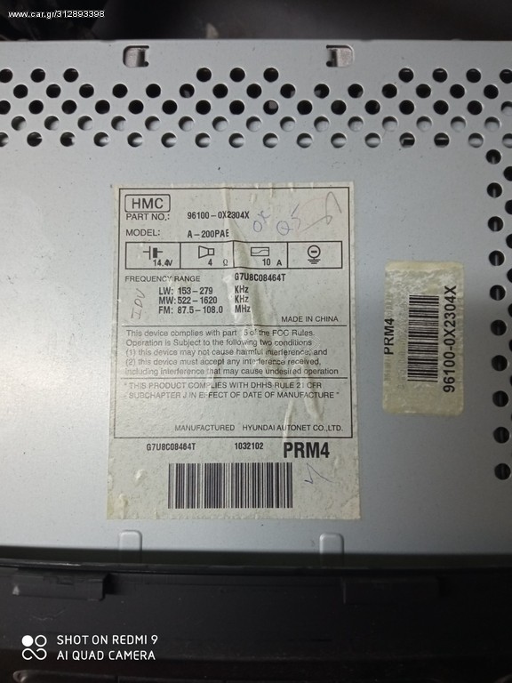 RADIO CD MP3 ΕΡΓΟΣΤΑΣΙΑΚΟ ΚΑΙ ΔΙΑΚΟΠΤΗΣ ALARM HYUNDAI I 10 2007-2013