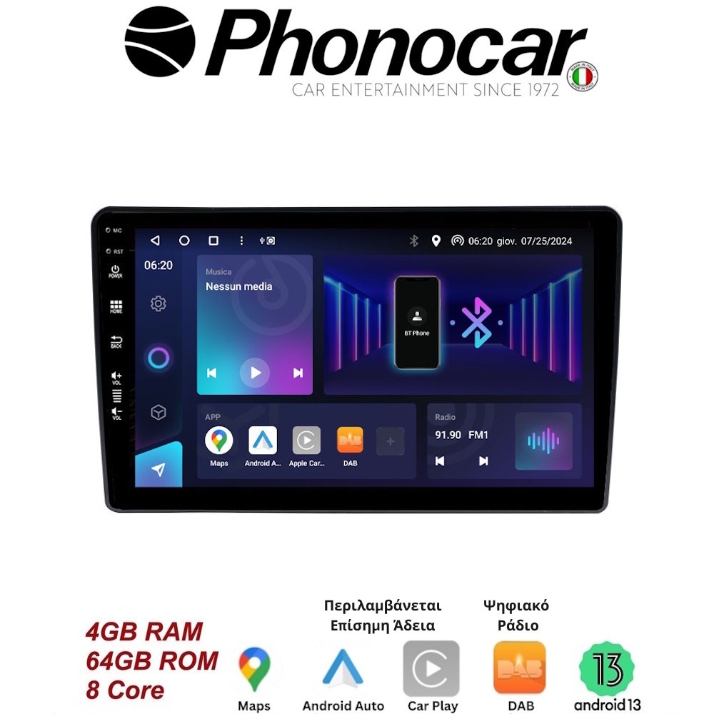 Το προιον περιλαμβάνει Επισημη Αδεια Apple Car Play και Android Auto, καθως και Ψηφιακο Ραδιο DAB.