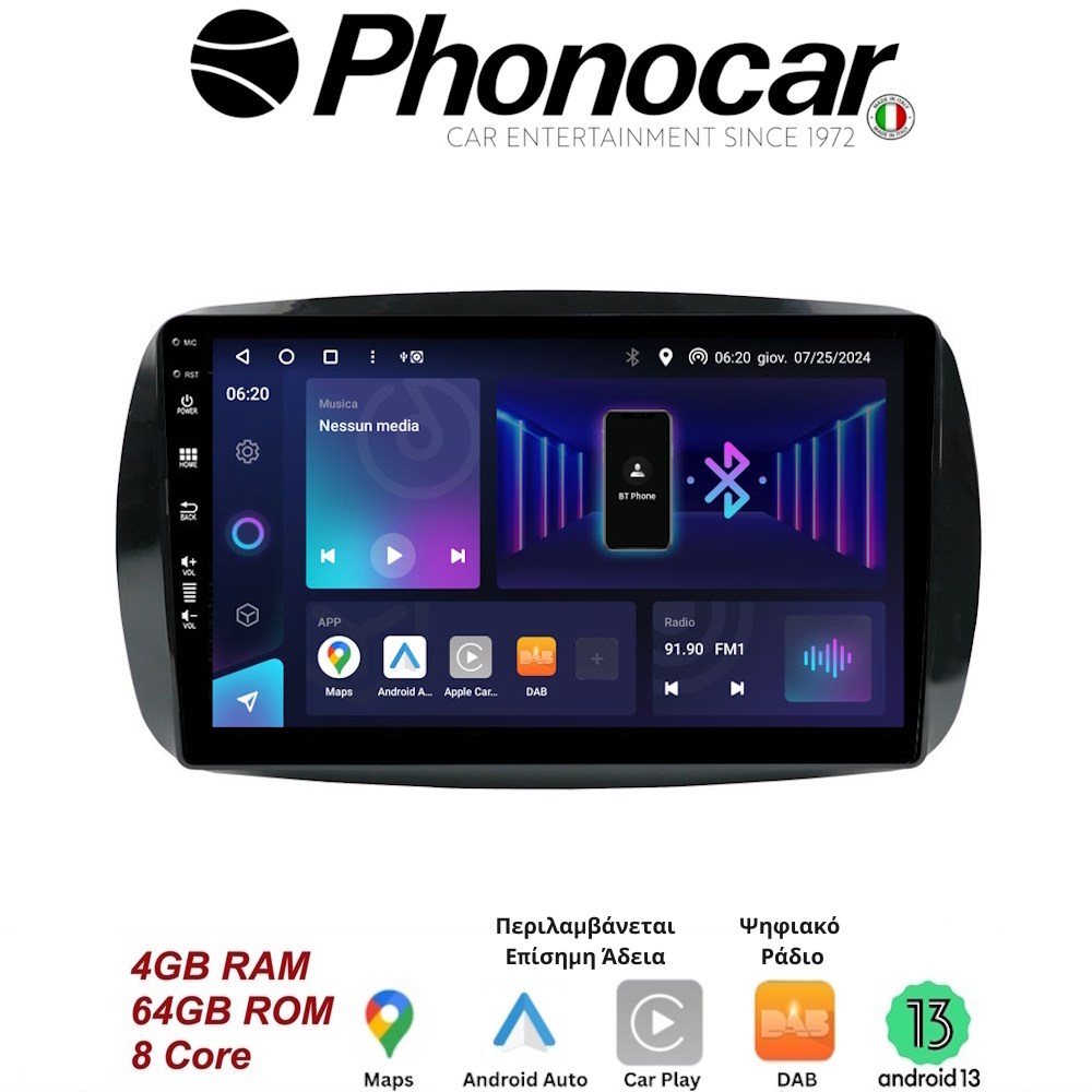 Το προιον περιλαμβάνει Επισημη Αδεια Apple Car Play και Android Auto, καθως και Ψηφιακο Ραδιο DAB.