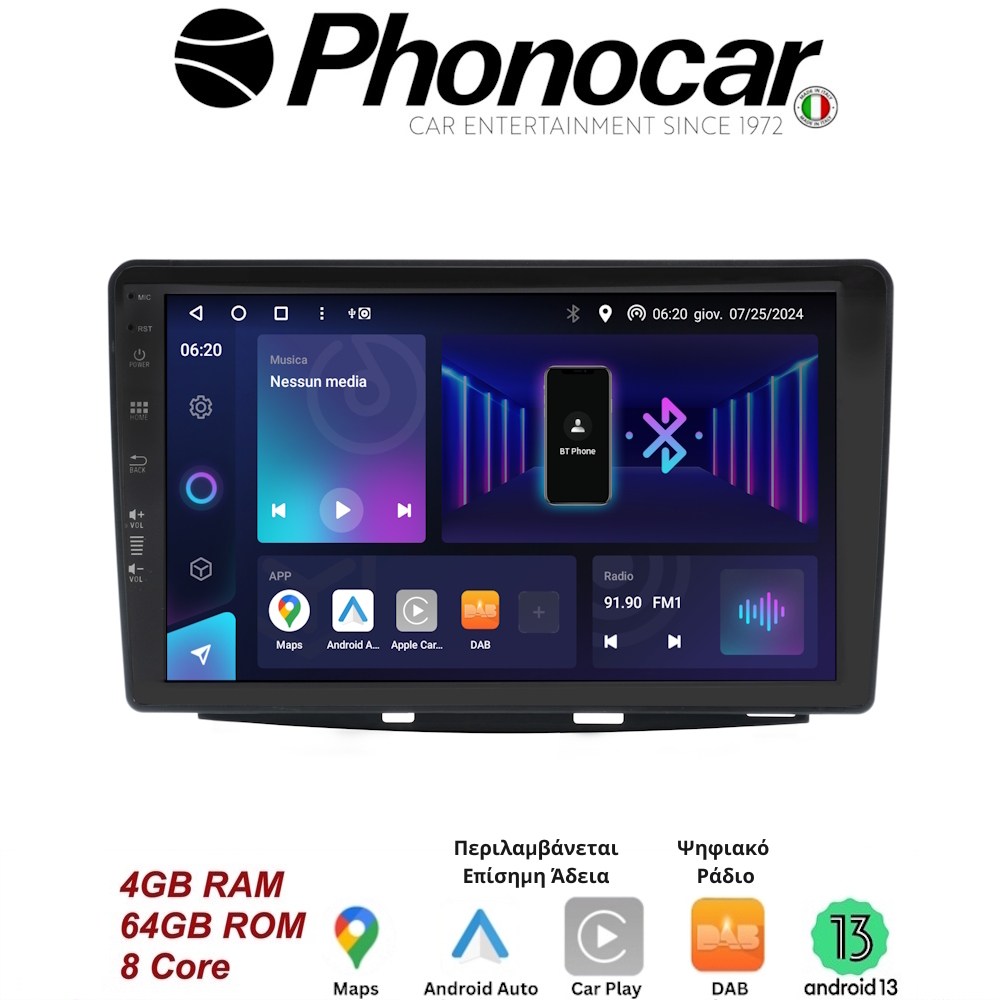 - Bluetooth V5.0: Handsfree με μικρόφωνο και ροή ήχου A2DP.